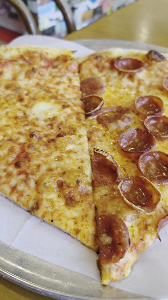 I found this place through google maps as I am a fan of pizza. I came to this place on a Saturday. Parking is a bit limited due to the structure of the street. I tried the margarita pizza slice which was thin, crusty, and yummy. I also ordered the Sicilian pepperoni pizza which was crunchy, dense, and yummy. The portions are generous and they are large slices. I also tried their soft serve duo which is chocolate and vanilla. The staff were friendly and open to questions. A yummy spot for lunch.